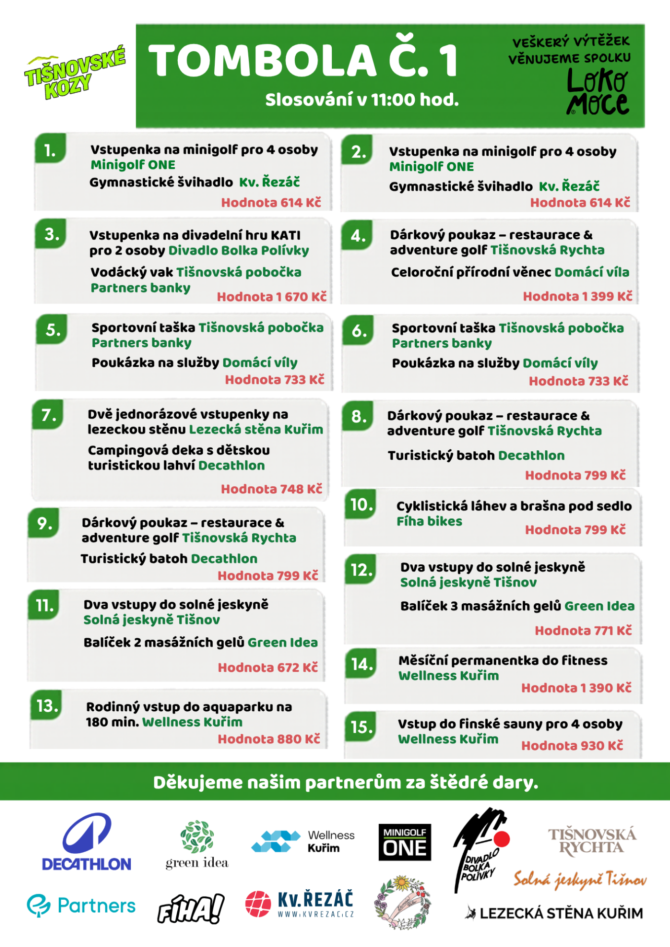 Na letošních Tišnovských Kozách nepůjde jen o běh, radost z pohybu a společně strávený čas. Velkým lákadlem bude i tombola, která nabídne desítky atraktivních cen a zároveň možnost podpořit dobrou věc.